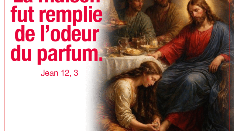 En cette semaine unique, Jésus lui-même va vivre ce mystère jusqu’au bout. Il va tout donner, son corps livré, son sang versé, sa vie offerte, et cette offrande-là remplira l’histoire entière de l’humanité d’une fragrance que rien, jamais, n’effacera. Nous entrons dans sa Passion portés par ce parfum-là, celui d’un amour qui ne calcule pas.